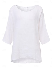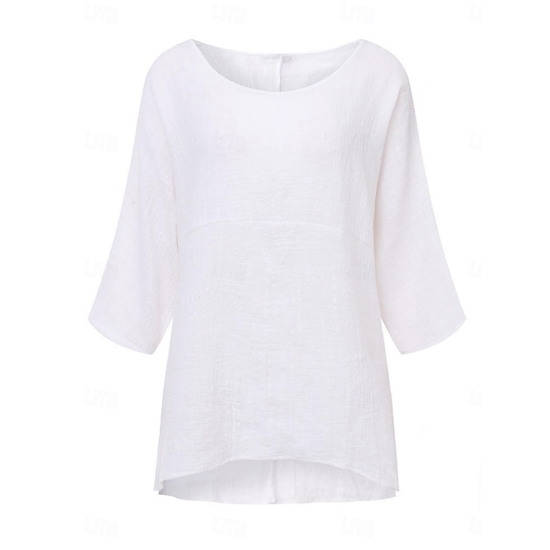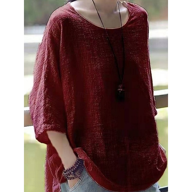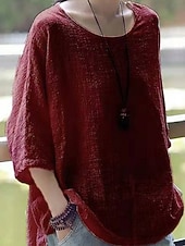 More information about Women's Shirt Blouse Solid Color Stylish Casual 3/4 Length Sleeve Crew Neck Regular Tops Daily Black White Wine Khaki Summer Spring