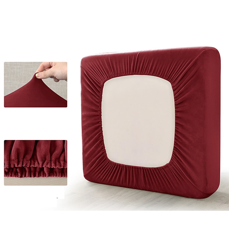 HOT ! 1 Piece Velvet Stretch Couch Cushion Cover Burgundy Plush Cushion Slipcover for Chair Cushion Furniture Protector Seat Cushion Sofa Cover with Elastic Bottom Washable