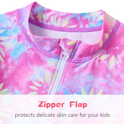 UNIFACO Infant Baby Girl Swimsuit Full Zipper Bathing Suit with Sun Hat UPF 50+ Long Sleeve Rash Guar Swim Suit 5