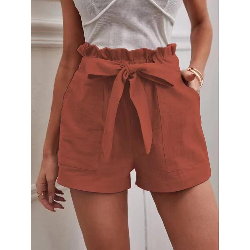 Highlights [Fabric] : Crafted from a blend of cotton and linen, these women's shorts offer a breathable and comfortable feel, perfect for warm summer days. [Fit] : Designed with a regular fit, these shorts provide ease of movement and a relaxed silhouette ideal for casual, everyday wear. [Design Features] : Featuring a versatile paperbag waist complete with an adjustable self-tie belt, these shorts add a feminine touch to any outfit. The side pockets not only enhance practicality but also complement the plain design, providing a minimalist yet stylish look. [Occasions] : Perfect for casual daily outings such as beach trips, weekend gatherings, or leisurely strolls in the park, these shorts are a must-have for any summer wardrobe. [Size Range] : Available in sizes S, M, L, XL, and 2XL, these shorts accommodate a range of body types and preferences. The neutral colors of white, red, navy blue, and khaki offer easy pairing with various tops.