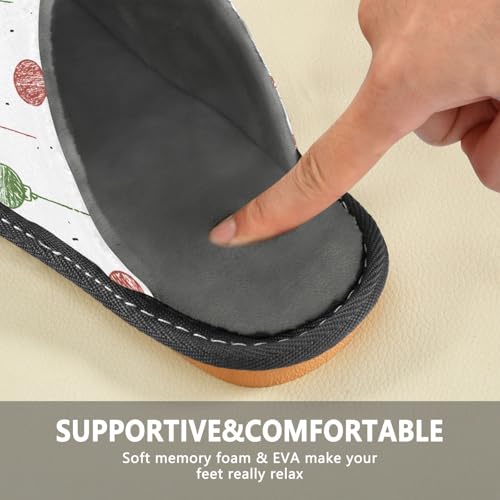 Slippers for Women Line Christmas Ball Pattern Soft Winter Warm Shoes Indoor Outdoor Non-Slip House Travel Slippers 6