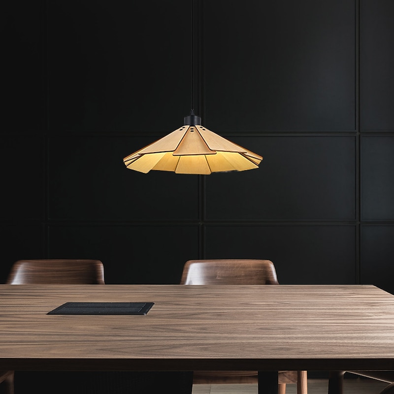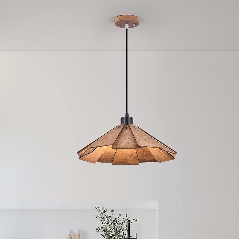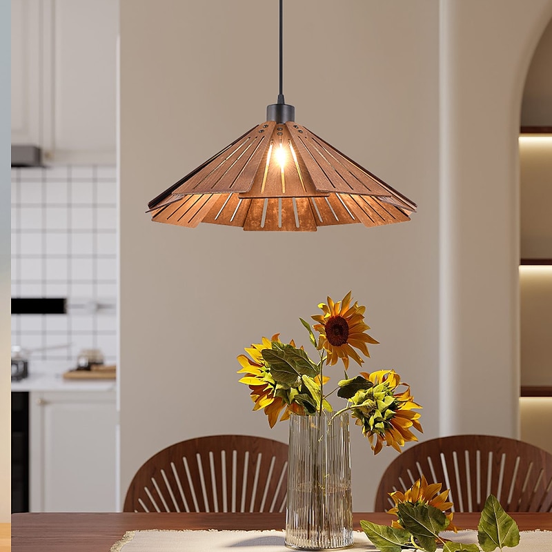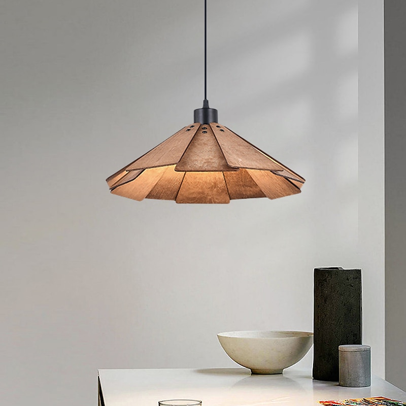 Modern Hanging Lamp Geometric Pendant Light Shade Natural Wooden Corridor Lighting Chandelier Ceiling Lamp for Bedroom Kitchen Island Farmhouse 110-240V 1
