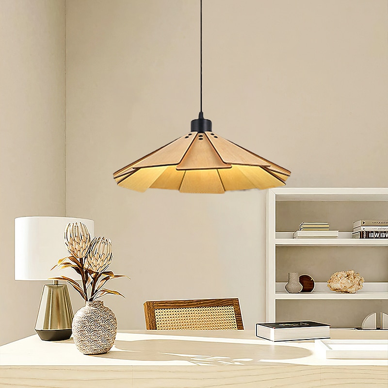 Modern Hanging Lamp Geometric Pendant Light Shade Natural Wooden Corridor Lighting Chandelier Ceiling Lamp for Bedroom Kitchen Island Farmhouse 110-240V 7