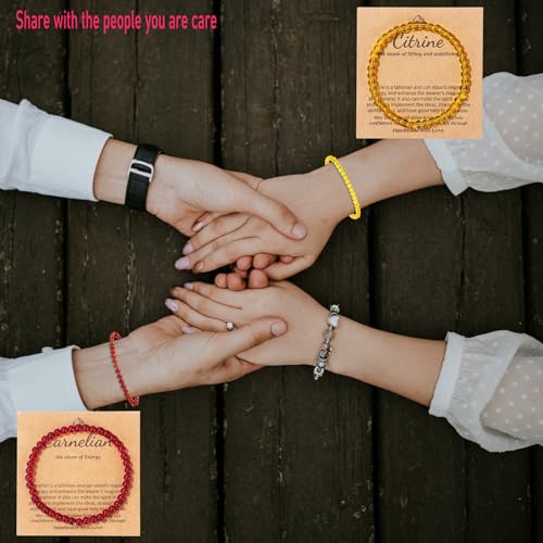 • Gemstones Bracelet- Crystal beaded bracelets are perfectly cut and polished by 4mm stone beads. Smooth surface and comfortable to wear, waterproof. These crystal bracelets are 6.7inch and adopt an elastic design that can be adjusted to any size(up to 8 inches for comfort), suitable for most people's wrists. Elegant and very easy to put on and take off