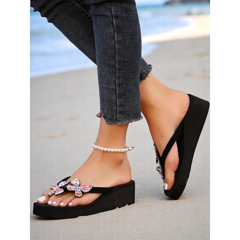 HOT ! Women's Glitter Butterfly Platform Flip-Flops – Colorful Beach Sandals for Summer, Vacation & Poolside Fun