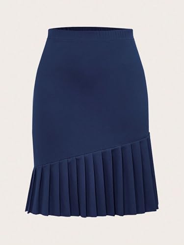 • 95% Polyester, 5% Elastane / Casual / Plain / High Waist / Unlined / Pleated, Ruffle Hem, Zipper / Short / Regular Fit / Navy Blue / Knitted Fabric