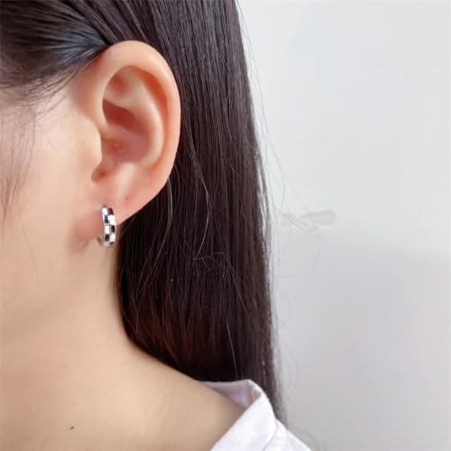 HOT ! Cute Checker Small Hoop Earrings for Women Cartilage Dainty Sterling Silver Plated Black White Enamel Round Circle Huggie Hoops Hypoallergenic Hooped Fashion Trendy Jewelry Gifts 10mm