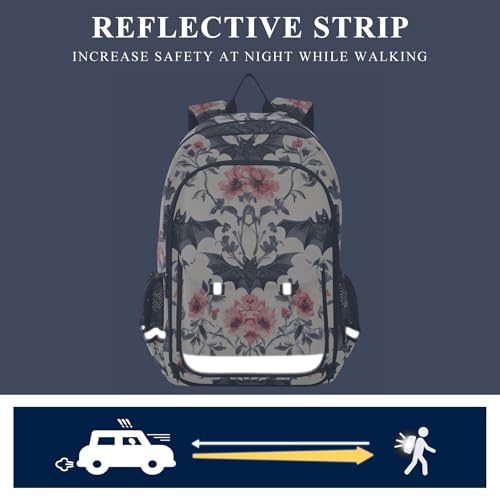 Goth Bats Rose Flowers Backpack Lightweight Daypack Laptop Backpack School Elementary Travel Computer Bookbag 5