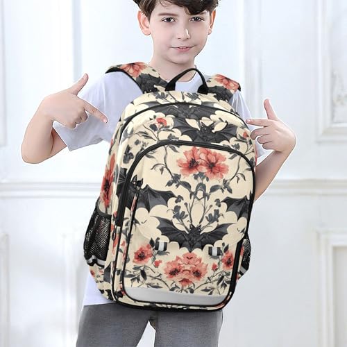 HOT ! Goth Bats Rose Flowers Backpack Lightweight Daypack Laptop Backpack School Elementary Travel Computer Bookbag