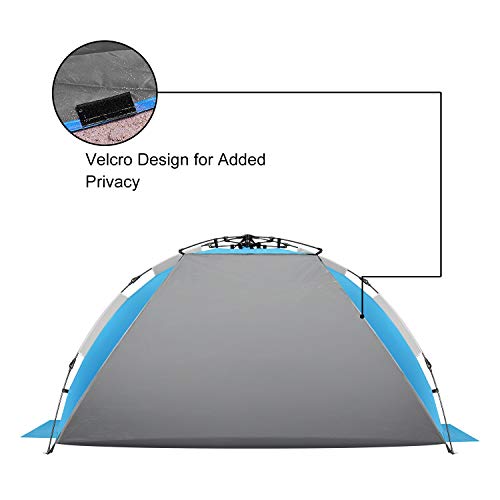 • Easy Setup and Portable - This instant beach tent features automatic patented pop up mechanism, makes it fast and easy to take down and fold back in under 30 seconds. Light weight at 4 lbs, packs down to 32" x 5" for easy carrying and storage.