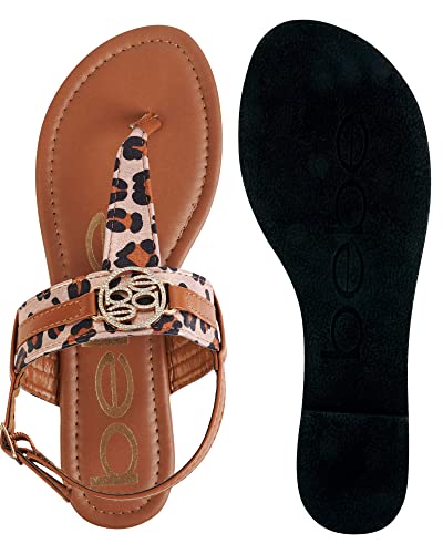 bebe Girls' Sandals - Leopard Print Thong Dress Sandals with Ankle Strap, Open Toe Easter Summer Shoes for Little Girls 6
