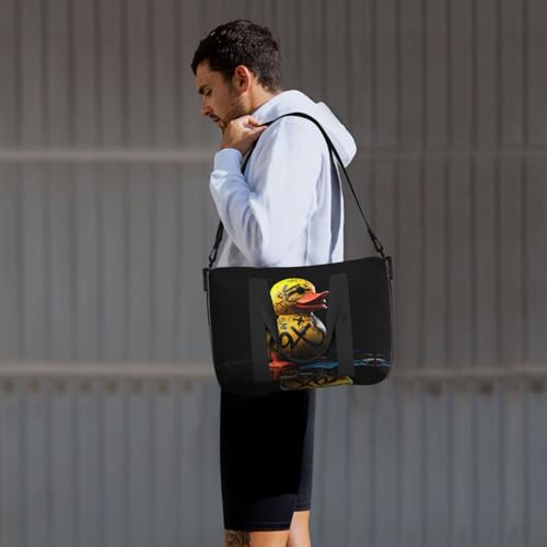 • Multi-Purpose Use: Designed for a variety of activities, this Graffiti Yellow Duck versatile bag is ideal for travel, weekend getaways, gym sessions, tennis, fishing, and more. It can function as a gym bag for men, a travel tote for women, or even as a women’s overnight bag