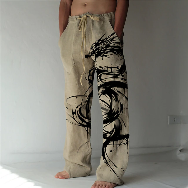 More information about Christmas Dragon Print Pants Mens Graphic | Casual Summer Beach Daily Holiday Grey Hawaiian Blue | Trousers Drawstring Elastic Waist 3D Prints Comfort Streetwear