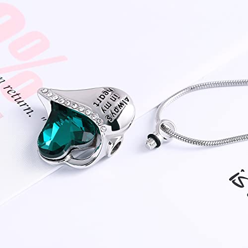 Urn Necklace for Ashes for Women, Cremation Jewelry for Ashes Cubic Zirconia Heart Locket Urn Pendant Necklace with Funnel Filler, Always in My Heart 5