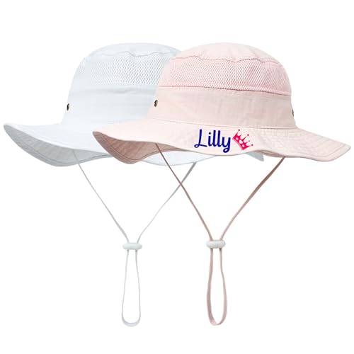 Custom Baby Sun Hat, Personalized Toddler Bucket Hat, Mesh Wide Brim Fishing Hat Beach Water Summer Hat for Boys Girls White 6