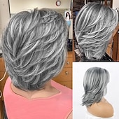 $26.99 - Ombre Silver Gray Womens Salt and Pepper Wigs for Women Bob Layered Wig with Curtain Bangs Short Pixie Haircuts for Older Women Synthetic Medium Length Bob Wigs for Women 2025. Shop for cheap Older Wigs online? Buy at lightinthebox.com on sale today!