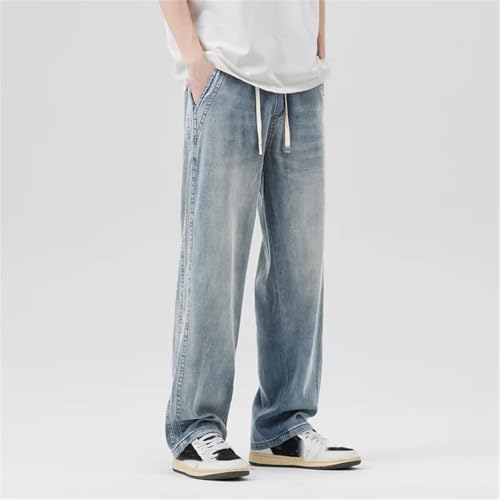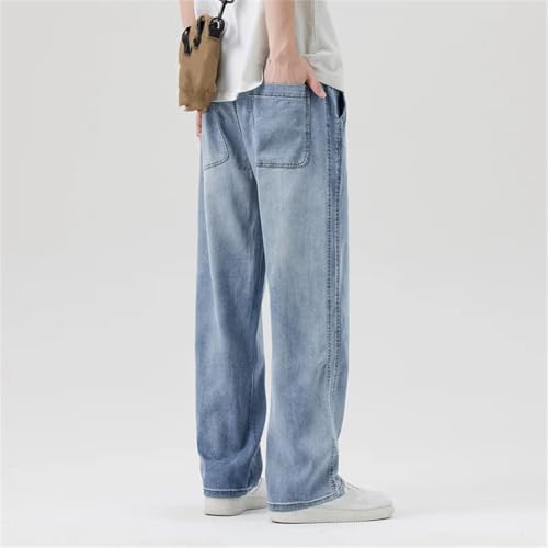 Men’S Summer Soft Jeans with Loose Straight Breathe Denim Trousers Relaxed Fit High Waisted Jeans 7
