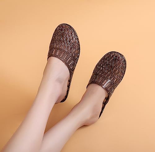 HOT ! Womens Jelly Shoes, White Jellies Sandals Glitter Clear Flats Slip On Summer Beach Slippers Transparent Closed Toe Soft Slide