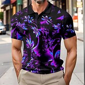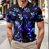 More information about Men's Floral Waffle Polo Shirts Short Sleeve Polo Shirts Collared Shirts Business Casual Outdoor Business Athleisure Buttons 3D Print Summer Blue Purple Green