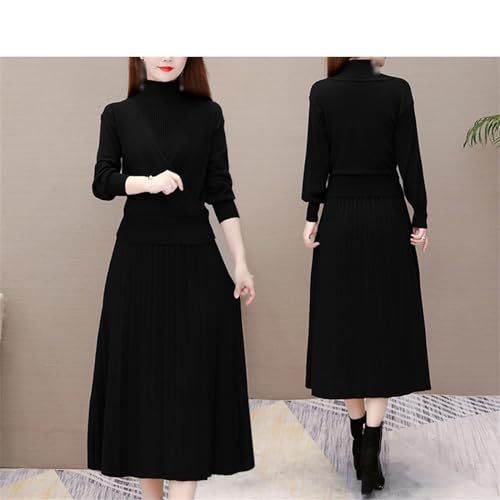HOT ! Casual Turtleneck Sleeveless Mid-Length Knitted Dress Solid Color Pullover Sweater