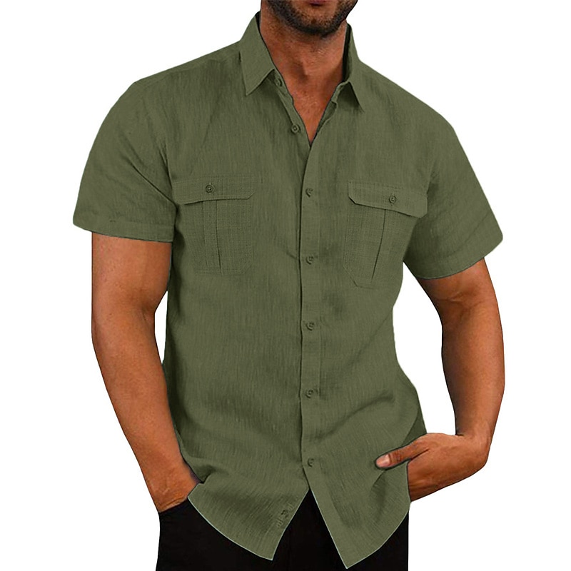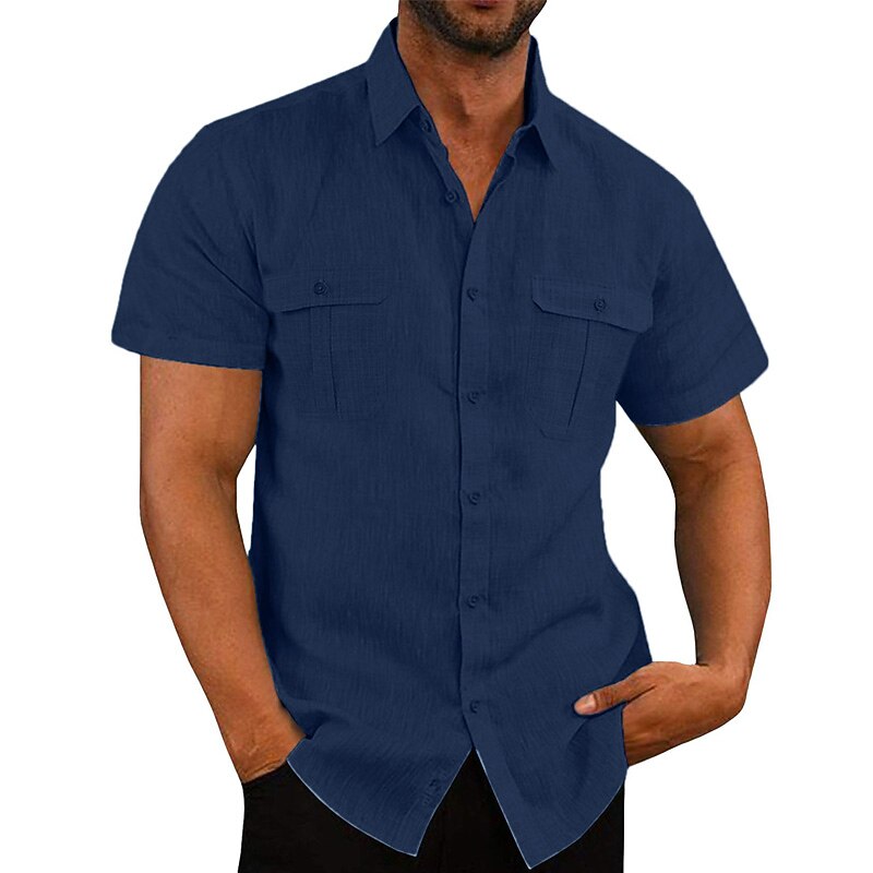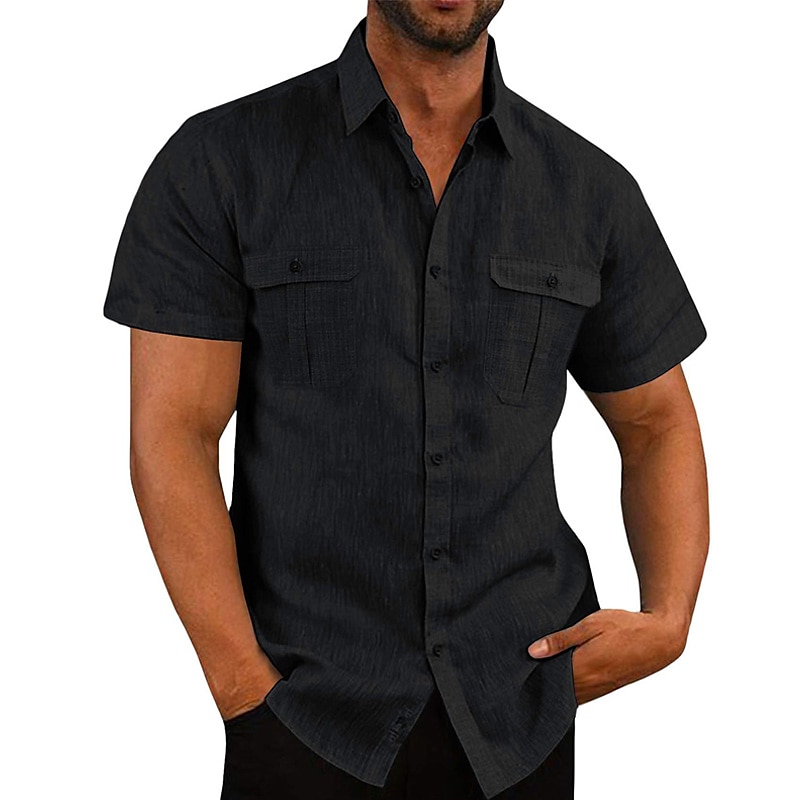 More information about Men's Shirt Casual Shirt Button Up Shirt Plain Vacation Casual Black White Navy Blue Blue Short Sleeve Turndown Spring & Summer Clothing Apparel Front Pocket