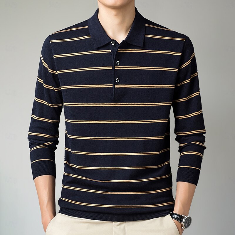 $31.99 - Men's Polo Knit Polo Sweater Formal Work Turndown Long Sleeve Modern Comfortable Striped Stripe Buttons Spring Spring & Fall Regular Fit Navy Blue Blue Dark Green Brown Polo 2025. Shop for cheap Men's Elite Polo online? Buy at lightinthebox.com on sale today!