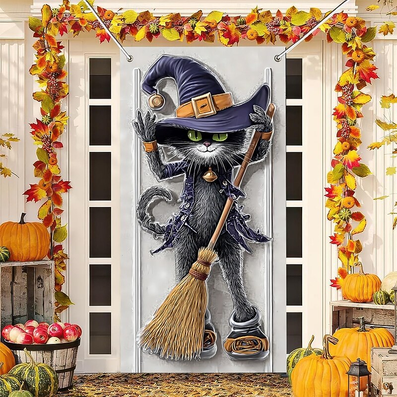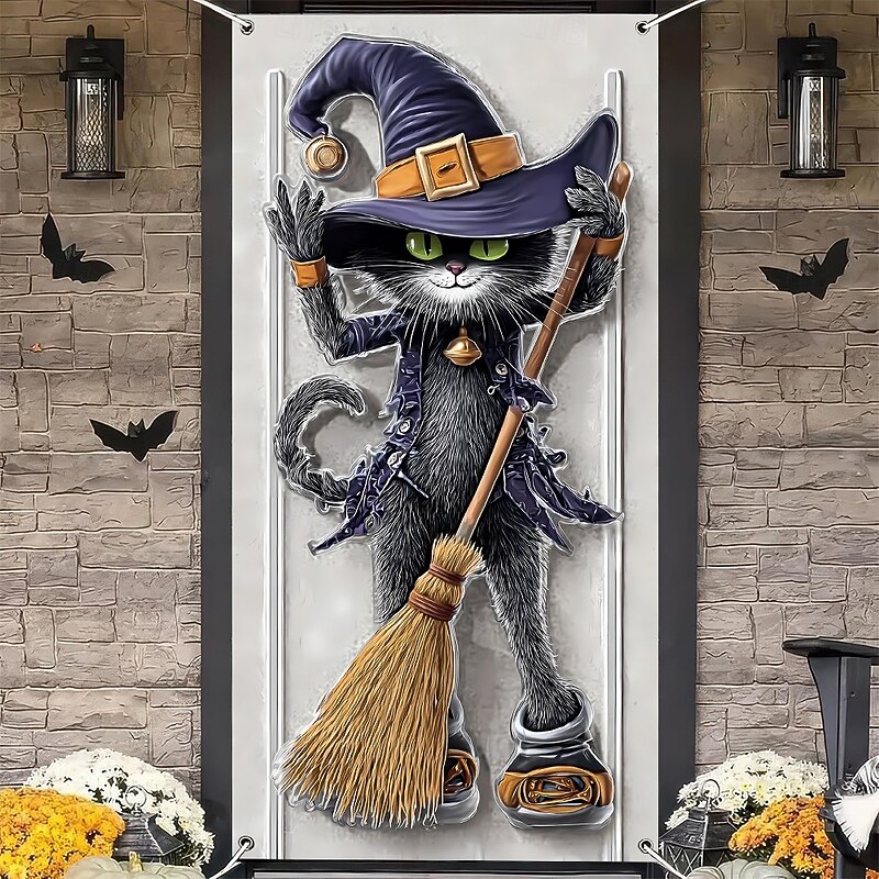 $15.99 - Halloween Door Cover Outdoor Banners Witch Cat 3D Dark Punk Gothic Style Party Outdoor Shooting Backgrounds Front Door Wall Porch Home Decor 2025. Shop for cheap Halloween Door Covers online? Buy at lightinthebox.com on sale today!