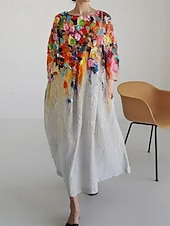 More information about Women's Maxi Dress A Line Dress Fit And Flare Dress Party Birthday Casual Party Office Wedding Guest Loose Fit Floral Graphic Long Sleeve Crew Neck Yellow Red Purple Spring Fall Winter Autumn