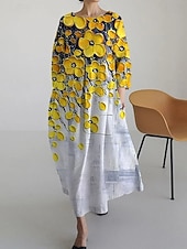 HOT ! Women's Maxi Dress A Line Dress Fit And Flare Dress Party Birthday Casual Party Office Wedding Guest Loose Fit Floral Graphic Long Sleeve Crew Neck Yellow Red Purple Spring Fall Winter Autumn