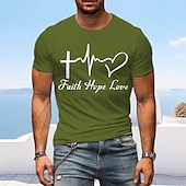 Mens Faith Hope Love T-Shirt, Christian Inspirational Graphic Tee with Heartbeat Cross Design