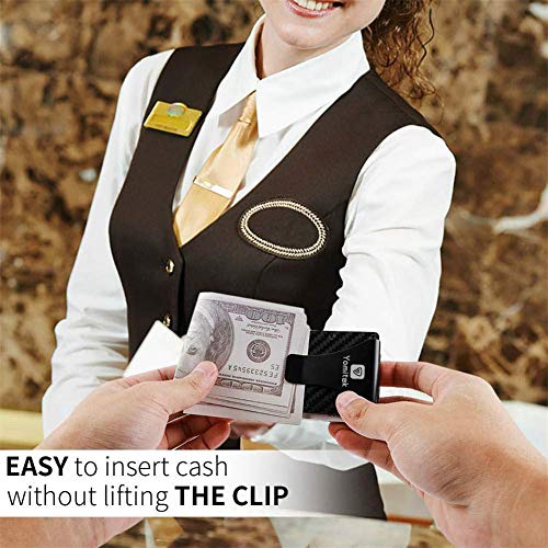 • 【Minimalist Design And Good Appearance】Say goodbye to fat and bloated wallets. The slim wallet holds up to cards and bills securely with minimal bulk. C-shape cutout to retrieve cards effortlessly. Removable money clip and cash strap.The wallet is made of carbon fiber material which better than alloy.A Fashionable and convenient appearance. Let everyone be free from the heavy purse strings and suit for everyone.