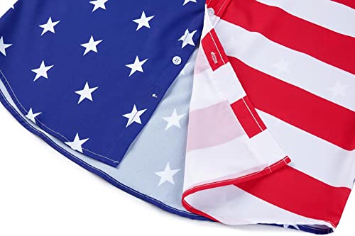 • MATCHING:Men's Patriotic American Flag Hawaiian shirt, short-sleeved button, stand-up collar, loose fit, outdoor style, you can also wear our holiday shirt with a T-shirt or shorts, you will be very eye-catching.