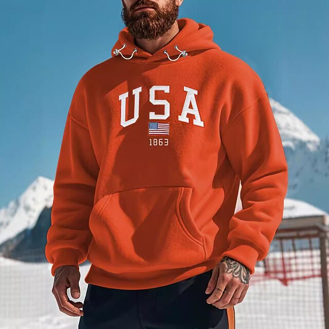 More information about Men's Hoodie Black White Navy Blue Purple Orange Hooded Plain Drawstring Embroidery Front Pocket Sports & Outdoor Daily Holiday Streetwear Casual Spring & Fall Clothing Apparel Hoodies Sweatshirts