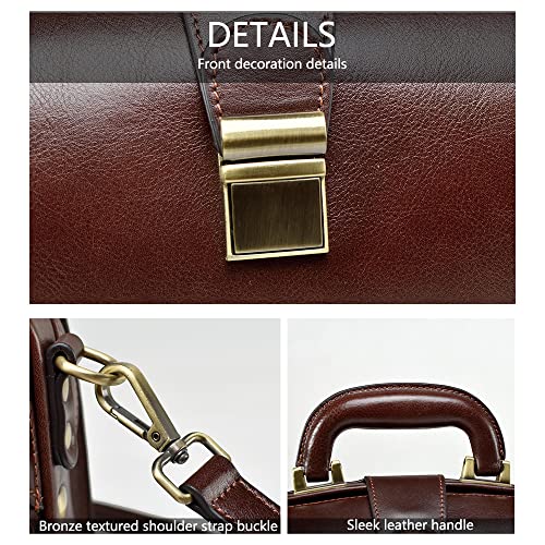 Genuine Leather Doctor BagTop Handle Purses Cowhide Handbag Brown Shoulder Bag Buckle Women's Bag 5