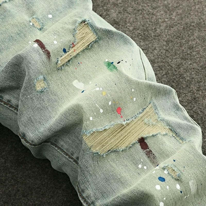More information about Mens Jeans Retro Washed Blue Stretch Slim Fit Ripped Jeans Men Painted Designer Vintage Casual Pencil Denim Pants
