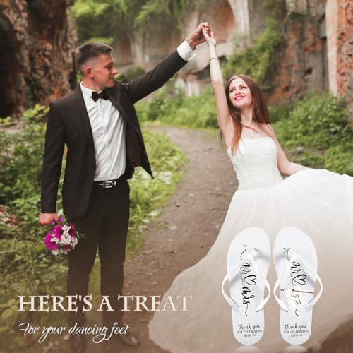 • Comfortable Material and Unique Design: the main material of the flip flops is PE, a material known for its comfort and reliability, ensuring your guests enjoy the wedding without any discomfort on their feet; The shoes printed with words [thank you for celebrating with us] are a way to express your gratitude to your guests, adding a touch of elegance