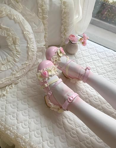More information about ZQW Sweet Lolita Mary Jane Shoes Kawaii Strawberry Cake Pumps for Women Handmade Chunky Mid Heel Girls Cosplay Party Shoes