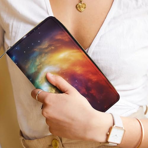 More information about Gorgeous Galaxy Print Long Wallet for Women Men PU Leather Card Holder Organizer with Zipper Coin Pocket & Cash Slots