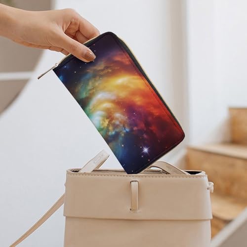 Gorgeous Galaxy Print Long Wallet for Women Men PU Leather Card Holder Organizer with Zipper Coin Pocket & Cash Slots 7