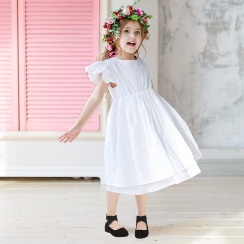 • ELASTIC CROSS ANKLE STRAP FLATS: Classic also elegant cross ankle strap ballet flats for girls, never go out of style, wear this toddler girl dress shoes, your angel would become more confident and beautiful! Various colors for you choose like shiny gold glitter, white, black, silver, and red, these casual shoes will gain your little princess's favor easily.
