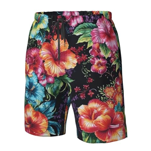 HOT ! Men's Swim Trunks Beautiful Hibiscus Flower Quick Dry Board Shorts Mens Bathing Suit Beach Swimwear with Pockets