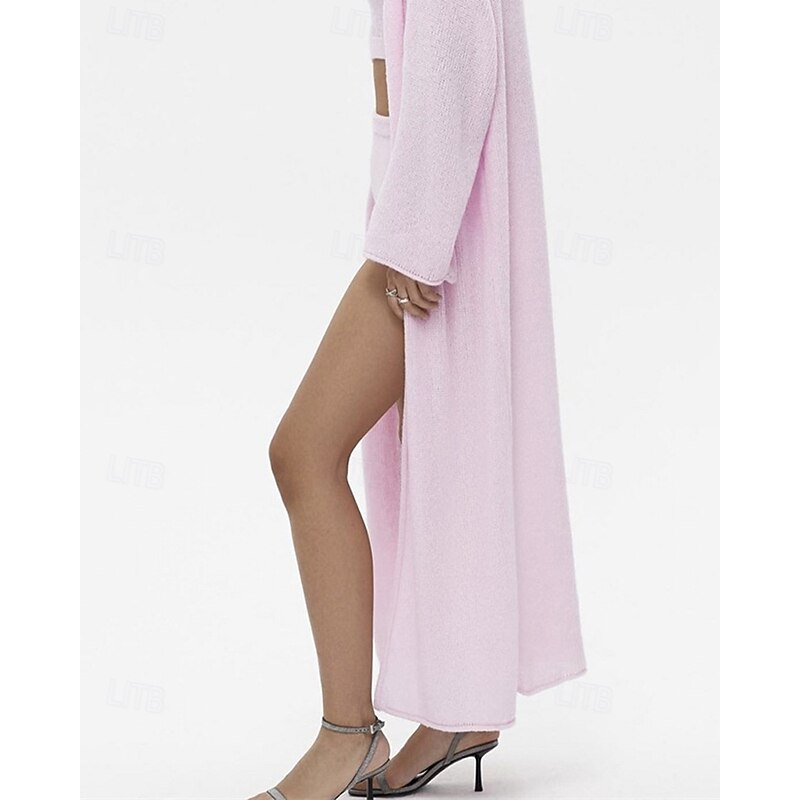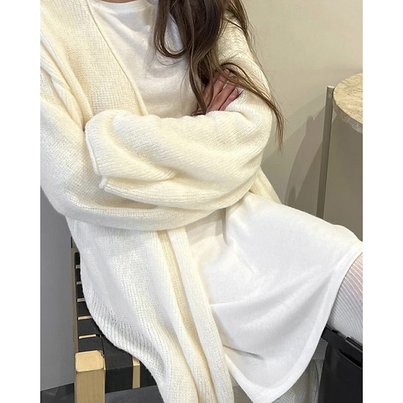More information about Women's Sweater Cardigan Fashion Streetwear Daily Solid Color Ribbed V Neck Knitted Long Sleeve Long Tops Knit Holiday Going out Weekend White Pink Fall Winter