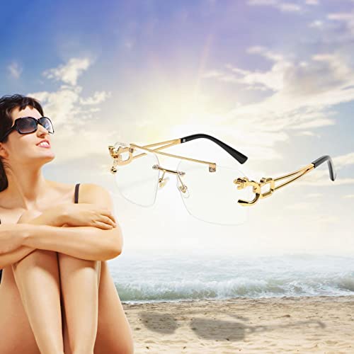 • 【Fashion Design】: rimless sunglasses with temples, comfortable nose pad will allow you to wear it for a long time and you will not feel tired.