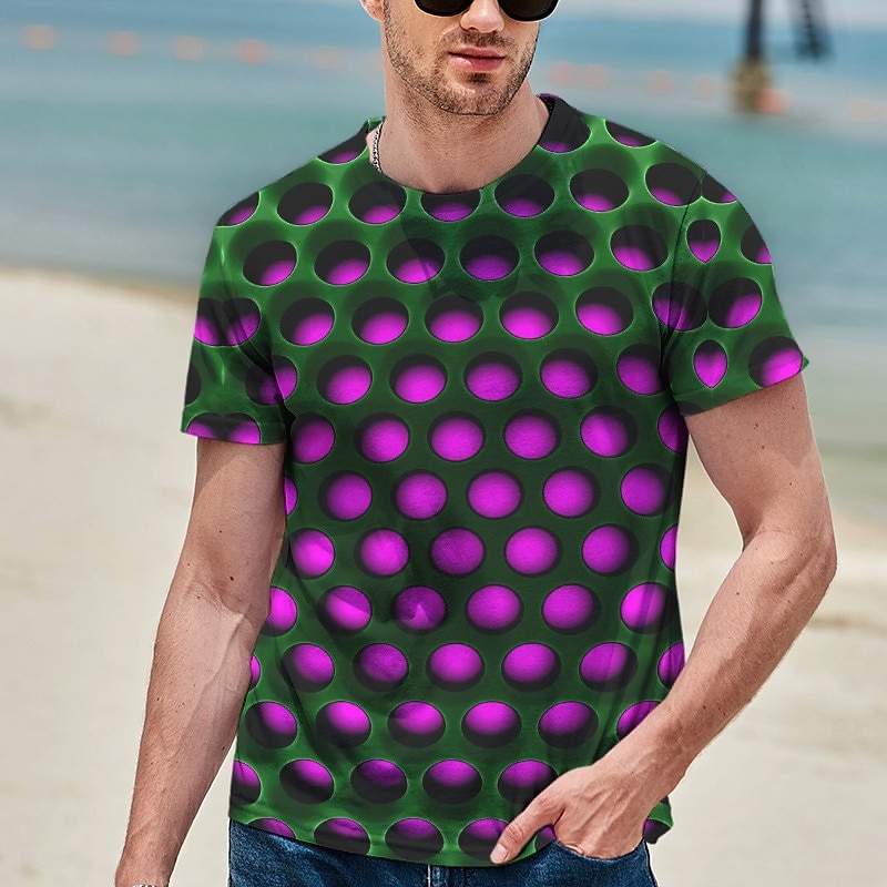 Highlights - All over 3D vertigo digital print with vibrant-lifelike colors. - Made with high-quality materials for a soft and smooth touch. - Breathable and moisture-wicking, perfect for staying cool during the summer. - Suitable for various occasions such as casual daily wear, beach, club, festival, holiday, street, surfing, fishing, hip hop, running, gym, and workout. - Can be easily matched with slacks, Hawaiian shorts, swim shorts, jeans, and more. - Machine and hand washable with water under 40 degrees Celsius. - Short sleeve design suitable for men. - Designer style with an optical illusion pattern. - Round neckline for a stylish look. - Available in plus size for a comfortable fit.