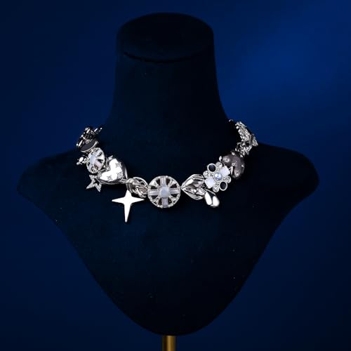 HOT ! Black Heart Chunky Choker Necklace, Star Choker Necklace for Women Gothic Y2K Aesthetic Outfit Jewelry Accessories Vintage Retro Chunky Costume