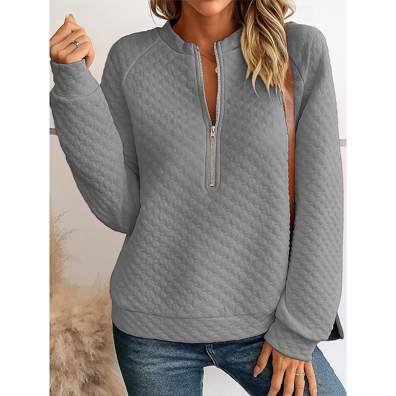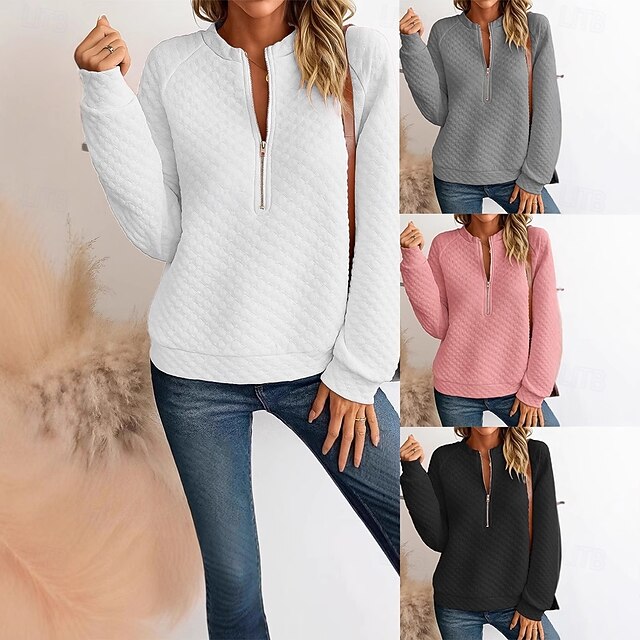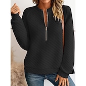 More information about Women's Blouse Solid Color Daily Stylish Casual Long Sleeve Crew Neck Regular Tops Work Daily Holiday Quarter Zip Black White Pink Grey Spring Fall Winter