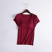 More information about Women's T Shirt Burgundy Tee Plain Solid Colored Basic Short Sleeve Round Neck Home Casual Daily Wine Red Taro purple Original white Ai Green face powder