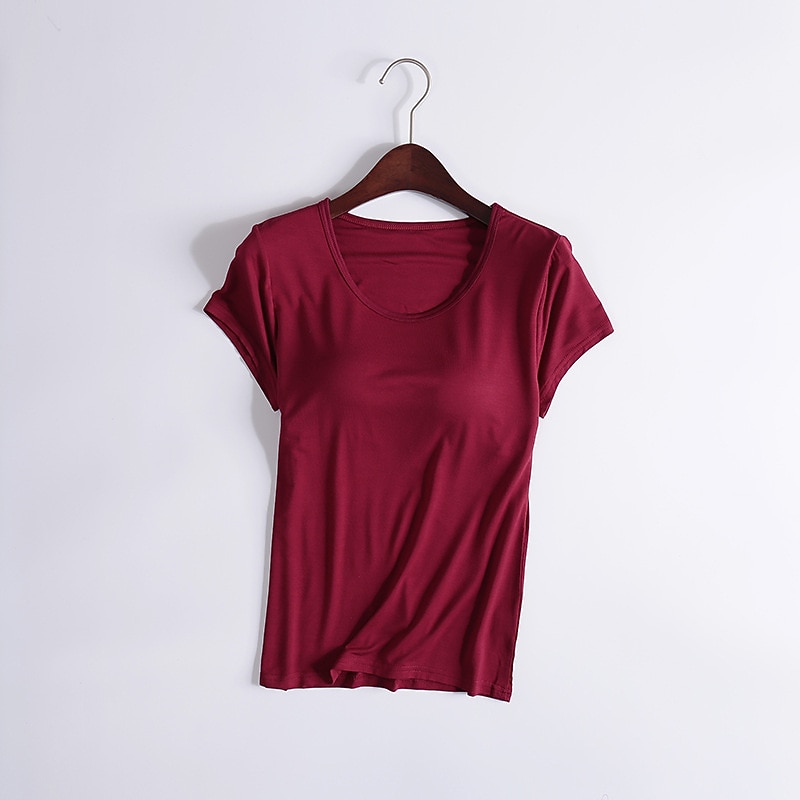 Women's T Shirt Burgundy Tee Plain Solid Colored Basic Short Sleeve Round Neck Home Casual Daily Wine Red Taro purple Original white Ai Green face powder 17