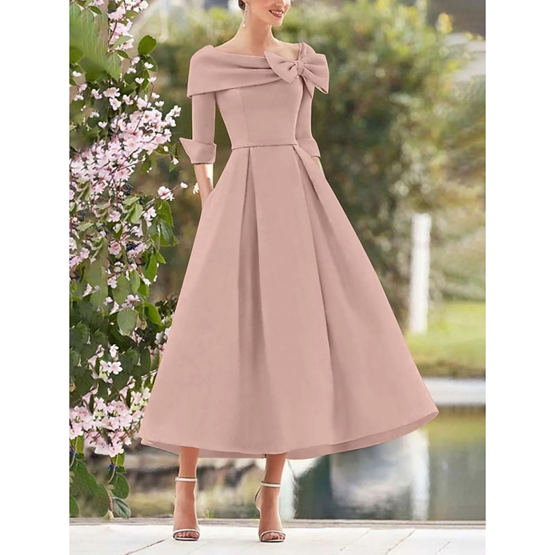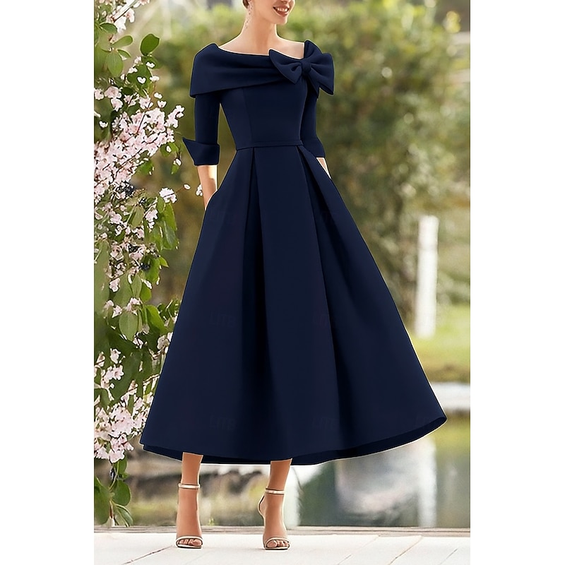 $139.99 - A-Line Cocktail Dresses Elegant Dress Formal Wedding Guest Tea Length 3/4 Length Sleeve Square Neck Pocket Satin with Bow(s) Pocket 2025. Shop for cheap Cocktail Dresses online? Buy at lightinthebox.com on sale today!