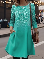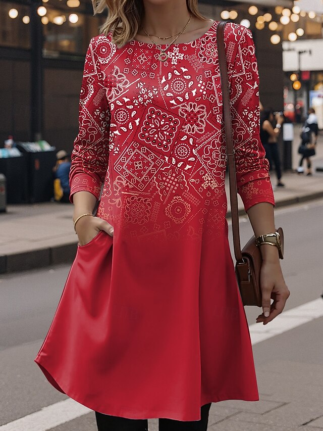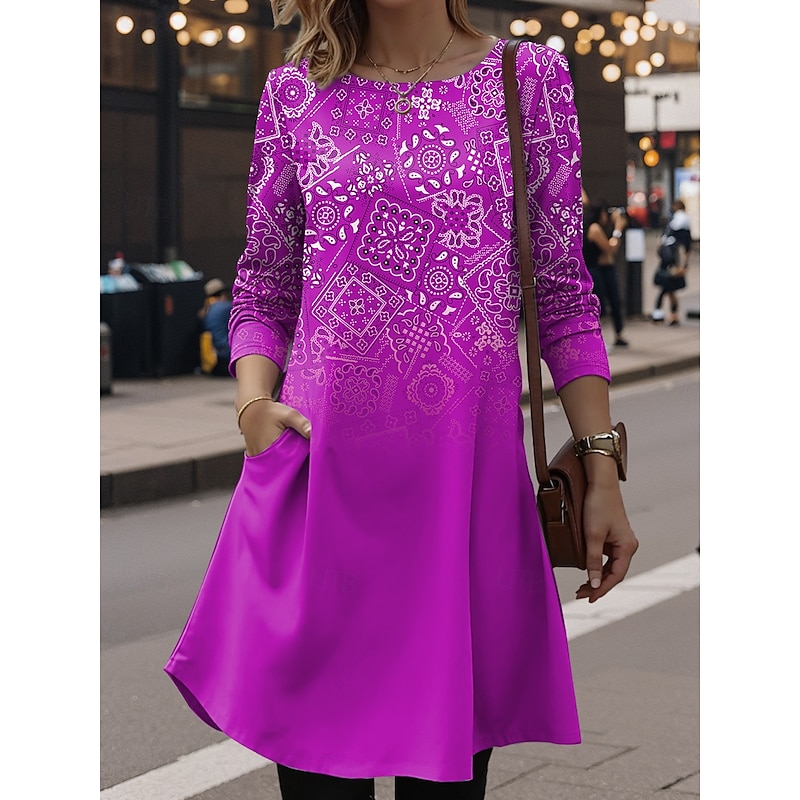 More information about Women's Mini Dress T Shirt Dress Tee Dress A Line Dress Vacation Casual Daily Date Regular Fit Ombre Graphic Geometric Long Sleeve Crew Neck Red Royal Blue Emerald Green Purple Summer Spring Fall